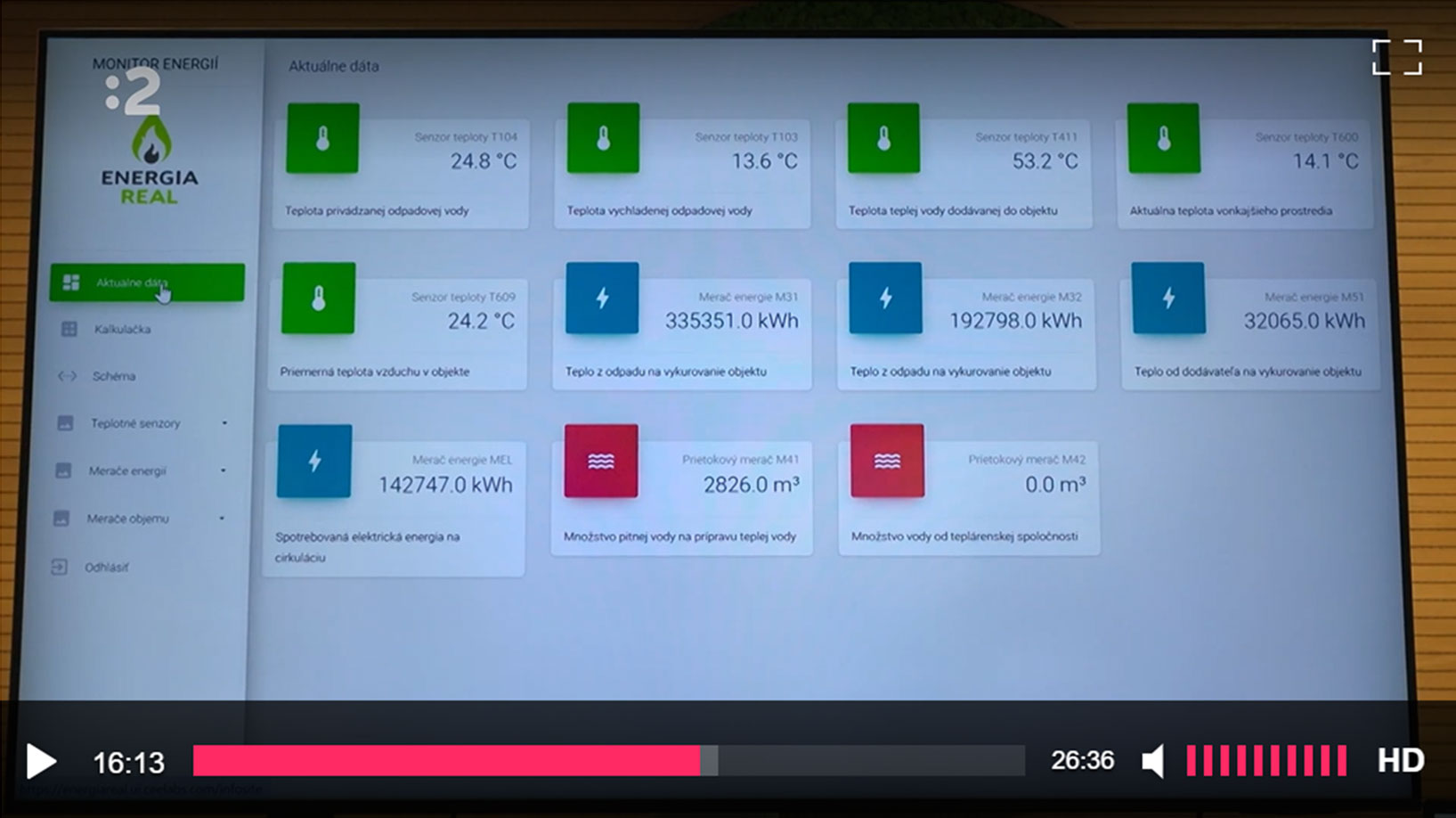 Ukážka výsledkov z IoT snímačov na rekuperačnom zariadení – Zdroj – STVR. VaT Dostupné na: archív relácie